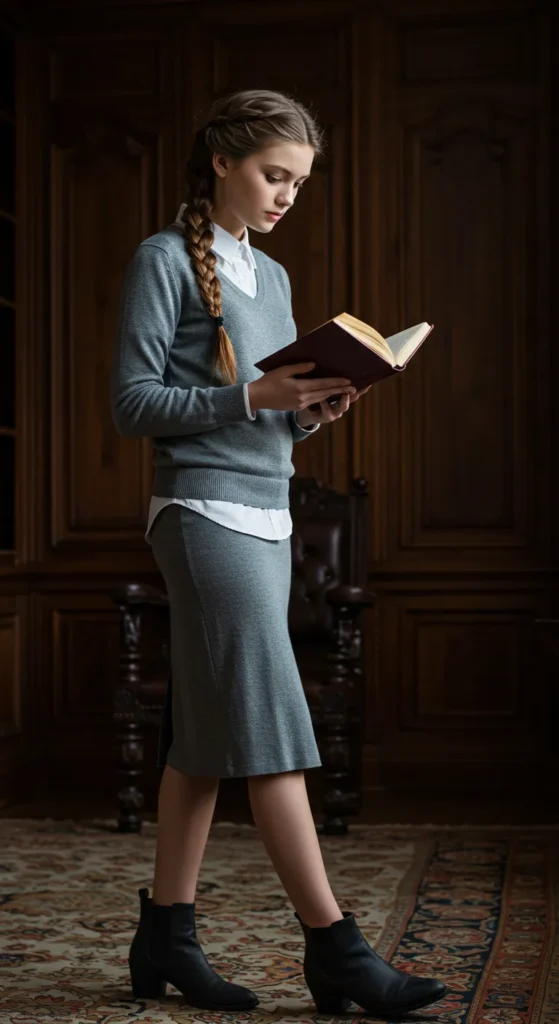 Layering is where royalty thrives. Slide a structured V-neck sweater over a white collared shirt and let the collar pop out perfectly. Pair it with a midi skirt or tailored pants and some ankle boots. This is pure boarding school elegance—clean, controlled, and quietly powerful. You don’t need loud prints; your confidence does the talking. It’s giving duchess on campus, with straight-A energy.