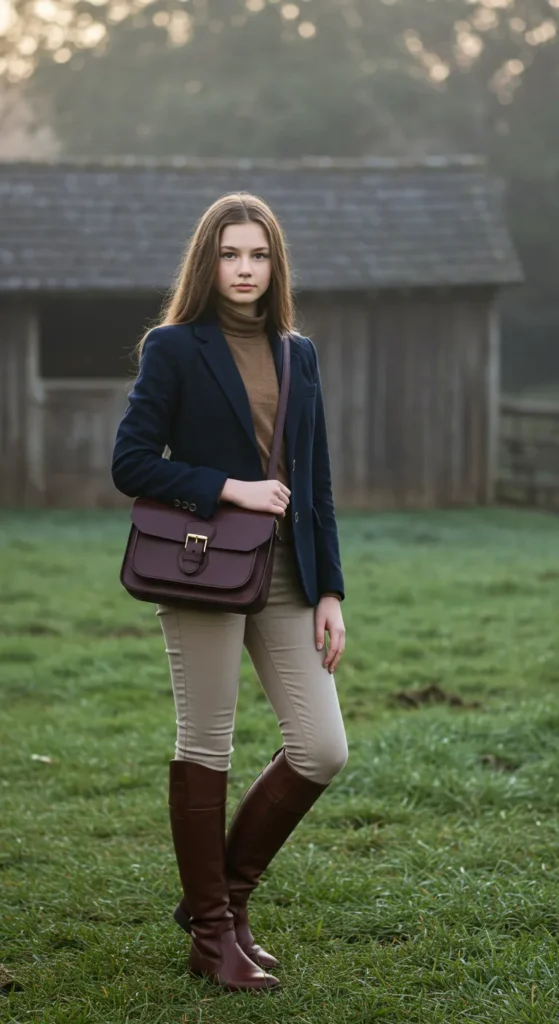 Riding boots. Fitted blazer. Cream trousers. You don’t need a horse to pull this off. Inspired by classic British countryside style, this